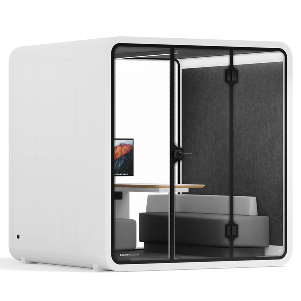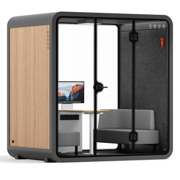 At Soundbox Store, we understand the value of productive meetings and focused workspaces. Our Quell 4-person office pod is a spacious and ISO accredited acoustic meeting booth, purpose-built for enhancing your office environment.